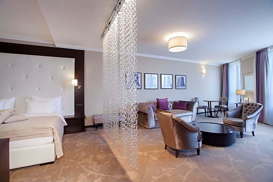 This suite is air-conditioned and features a seating area, mini-bar and an LCD satellite TV. The modern bathroom comes with a bathrobe, hairdryer and a bidet.